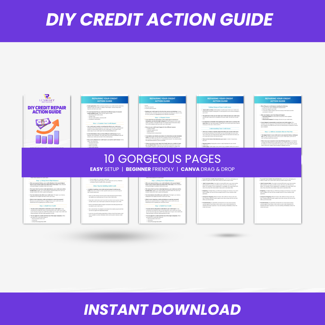 Stop paying for expensive credit repair services! The DIY Credit Repair Action Guide (2025 Edition) empowers you to fix your own credit with a clear, step-by-step plan. Master the art of self-guided credit restoration and take control of your financial future. Download your action guide and start boosting your score today!