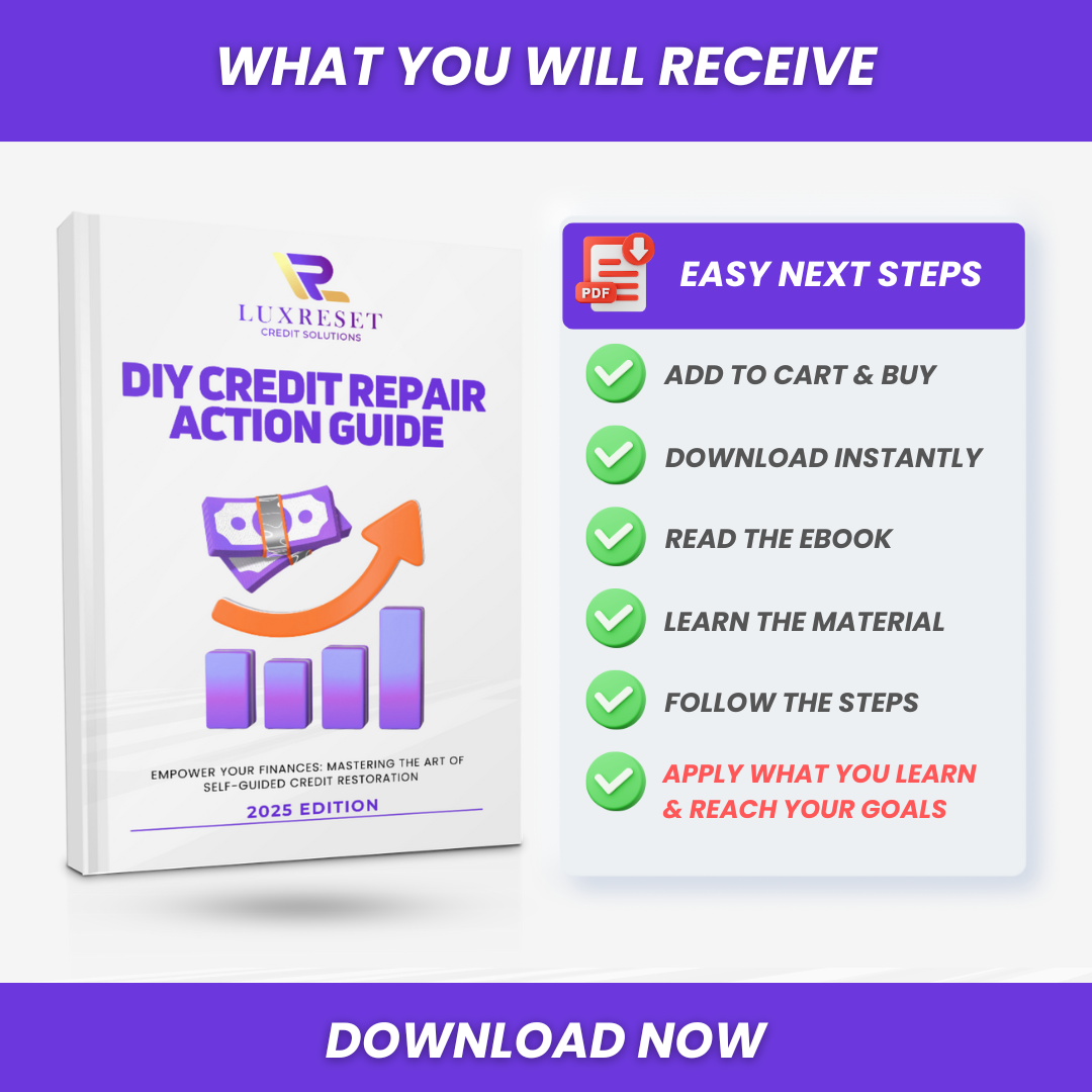 Introducing the DIY Credit Repair Action Guide: 2025 Edition from LUXRESET Credit Solutions. This is not just another book—it’s a hands-on manual designed to empower you with the strategies needed for effective, self-guided credit restoration. We show you exactly where to focus your efforts for maximum impact.