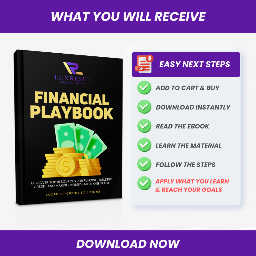 The Financial Playbook by Luxreset Credit Solutions is the resource-packed handbook designed to help you take control of your finances. We’ve cut through the noise to bring you a curated collection of expert advice, proven strategies, and the best resources available to accelerate your journey to financial freedom.